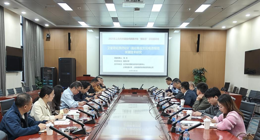 On October 23rd, the 2025 Shanghai Key Technology R&D Program "New Energy" Special Project - "Key Technology Research on Lightweight Perovskite/Crystalline Silicon Tandem Solar Cell Modules for Satellites" was officially launched at the State Key Laboratory of Photovoltaic Science and Technology, Fudan University. Leaders from the Shanghai Municipal Science and Technology Commission, project initiation review experts, and representatives from participating organizations including Fudan University, Shanghai Jiao Tong University, the Yangtze River Delta Solar Photovoltaic Technology Innovation Center (hereinafter referred to as "YIST"), and Shanghai Xuli Perovskite New Energy Co., Ltd. attended the launch ceremony. As one of the project undertakers, YIST, leveraging its technological accumulation in ultra-thin and high-efficiency crystalline silicon bottom cells, has become a core force driving the integrated innovation of "Aerospace + Photovoltaics".